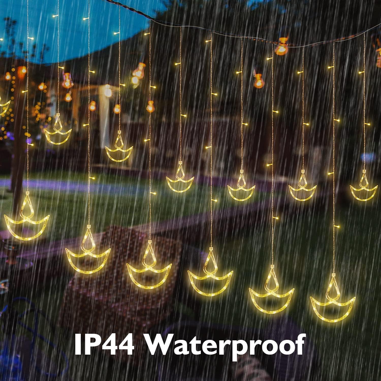 • Package Contains: 1 x 12 Diya Curtain LED Light (3 Meter length, 108 LEDs total)