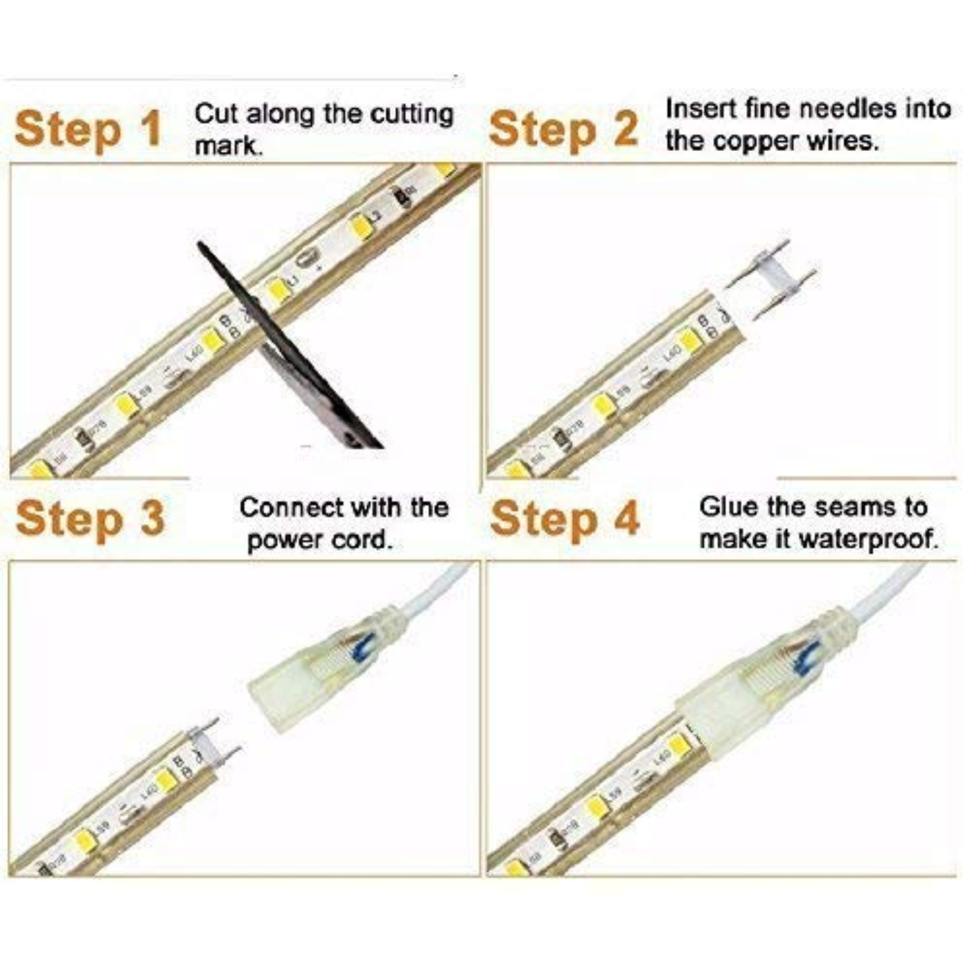 • High-brightness Amber Rope Light – 120 LEDs/m,