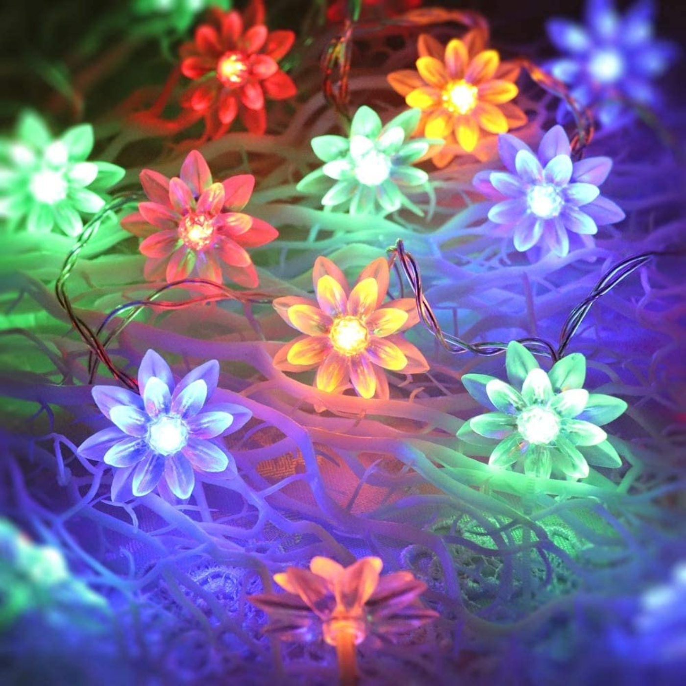 3M LED Flower String Lights – 14 LED Multicolor Double Silicon Flower Lights for Diwali, Christmas & Home Decoration